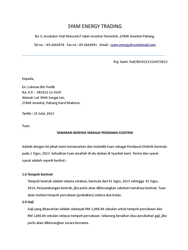 Contoh Surat Tawaran Kerja Qomartech Engineering Lokman Toolib Academia Edu